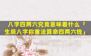 “八字四两六”通 🕸 常指的是八字命理中 💮 的 🦍 一种特殊格局,其含义如下: