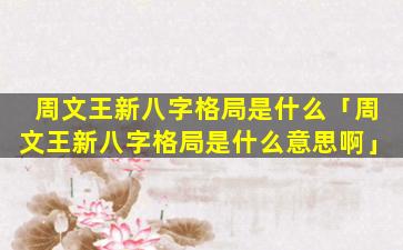 “周文王新八字格局”并不是一个公认或 🌲 主流的八字命理术语八字命理。中的格局有很多 💐 种,但“没有一个称为周文王新八字格局”。