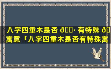 在传统 🍀 八字命 🦟 理中八字,四重木确实有特殊的寓意。