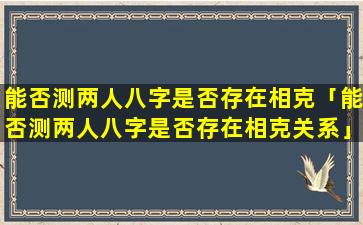 综合以上因素,判断两人八字 🐴 是否存在 🌴 相克关系。