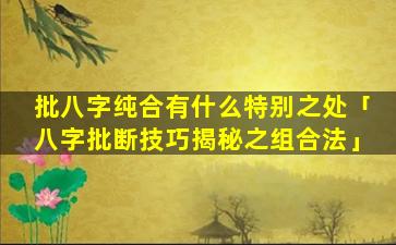 组合法运用在组合法中,重点关注八字中相生相 🐴 克、干,支关、系、的组合、并根据这些组合关系来推断命主的性格事业财运婚姻等方面的信息。