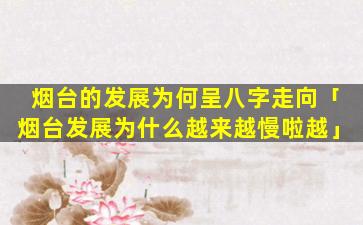 烟台 🦉 的 🐋 发展并不呈八字走 🐋 向。