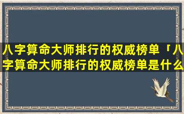 目前没有公认的“八 🕸 字算命大师排行榜权威榜单八字算命”。是一个争议较大的领域,不。同的人对大师的认可程度可能会有很大 🦅 差异