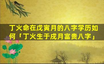 对于“丁 🐕 火命在戊寅月的八字学历如何的”问题,需,要 🐞 综合八字命理的诸多因素来分析包括: