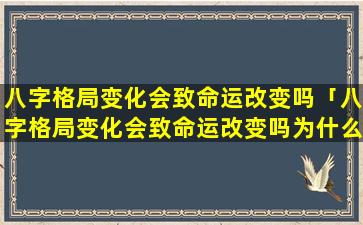 八字格局的变化不一 🐡 定会导致命运彻底改变,但可能会对命运产生一定的影响命。理,学。注重的是一个人的先天命运基础而人的后天努力和选择也会影响命运的走向