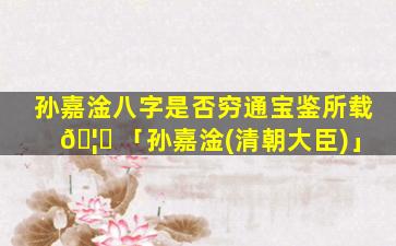 没有 🦉 找到孙嘉淦的八 🐦 字载于穷通宝鉴 🦋 中的相关记载。