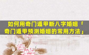 奇门遁甲 🐶 断八字婚姻的 🐳 步骤