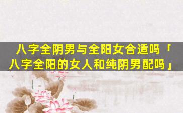 因此,从命理学角度来说,“八字全 🐧 阴男与全阳女合适吗”这个问题没有意义。在,现实生活中男女之间的匹配主要取决于性格、价、值,观。生活方式等因素与八字中的阴阳平衡无关