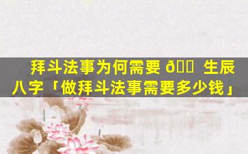拜斗法事需要生 🌼 辰八 🌵 字主要出于以下原 🦟 因: