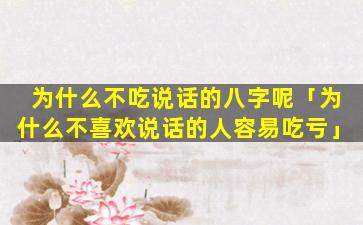 说话 🐡 不吃字的 🌹 意思 🐞 是: