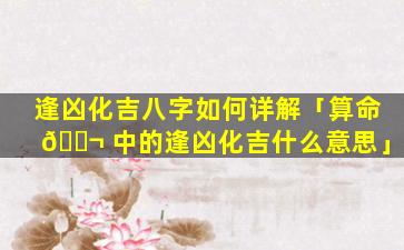 在算命中,“逢凶化吉”指,遭 🐱 ,遇凶险或灾难时能够通过某种方式或途径将凶险转化为吉利或安危。