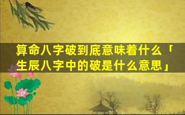八字中 🐒 “破”的 🐳 含 🐴 义