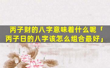 对于丙子日来说 🌿 ,最佳八字组合如下: