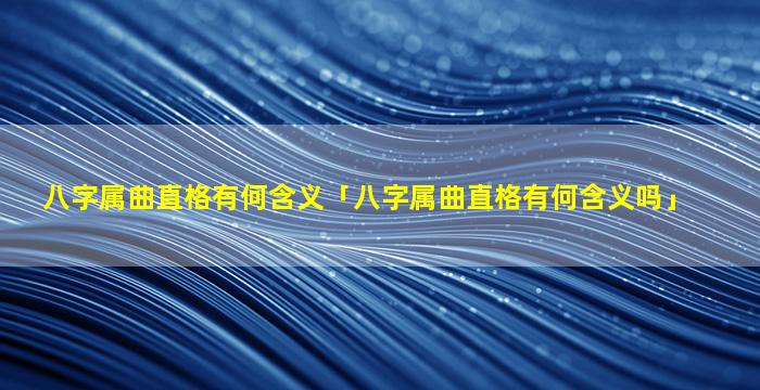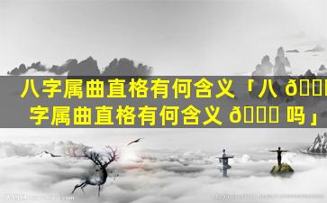曲直格是八字 🐳 命理中的一种特殊格局,以曲“和直”两“星”为主命。书云八字:“纯曲直,必然富贵。”即,如“果一”个“人的八字中”同,时,兼,有曲和直两星。并 🐟 且其他条 🐝 件得宜则一生财运亨通富贵无忧