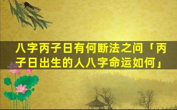 丙 🐘 子日柱断 🐒 法 🐟
