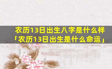 农历13日出生八字的日柱为日元,具体干支 🦆 根据出生年份而定。
