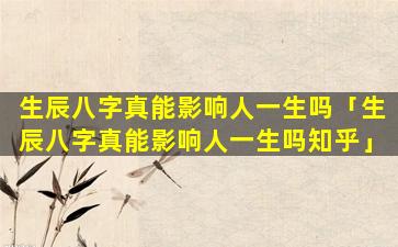 生辰八字是否能影响人一生目前仍是一个有争 🐡 议的问题。虽然有些人认为自己的生辰八字与个人经历和性格特征有一定的对应关系,但。缺,乏,科。学证据支持这一说法因此对生辰八字的解读应以理性看待避免迷信