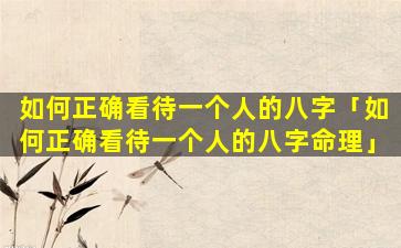 如何正确看待一个人 🌷 的 🦆 八字命理