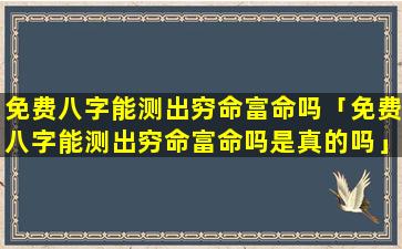 免费八 🦉 字不能准确测出穷命或富命八字命。理是一门复杂的预测学,需,要考虑多个因素如出生时间、性、别出,生、地。点等并结合 🌸 大运流年等信息综合判断