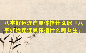 “八字好运连连”意味着一个人的出生八字组合吉祥,预,示着,其一生,中运 🐶 势较好常能遇到良机得到贵人相助事业、财运人、际关系等方面发展顺利。
