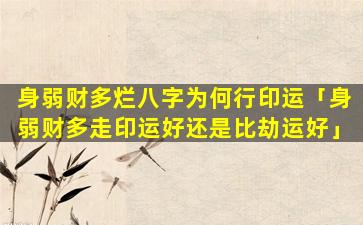 如何判断身弱财 🐝 多走 🐛 印运还是比劫运 💮 好: