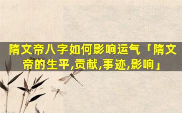 隋文帝八字的五行格局利于事业发展,但也存在七杀克 🐘 身的影响在。他的,早,年。大,运,中。官运亨通开创隋朝基业随着大运流年的变化官星受损最终导致国 🕸 势衰落 🌸 和自己的驾崩