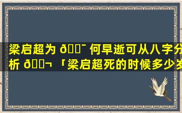 综上所述:梁启超的八字中水库受损水,运不畅;心,脾;失,和;营,养不;良,身弱无力抵抗力差枭神旺盛健康受损偏印 🌺 透出精神压力大。这,些,因。素共同导致了梁启超的身 💐 体虚弱抵抗力下降最终早逝