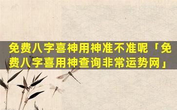 “免费八字喜神用神”的 🦈 准确性取决于算命者所 🕸 使用的算法和技巧。