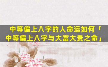 中等偏上八字与大富大 🐕 贵 🌾 之命