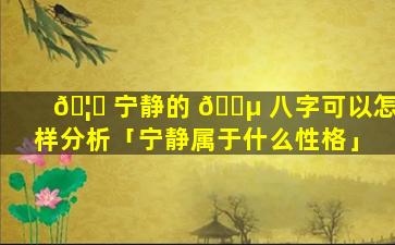 宁静八字的人性格特 🦊 点 🦋