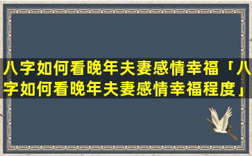 八字看晚年夫妻 🌹 感情幸福度 🐳 的要 🐠 点