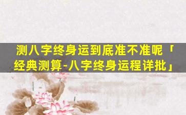 八字测终身运的 🌹 准确性 🌼 一直是一个有争议的话题。