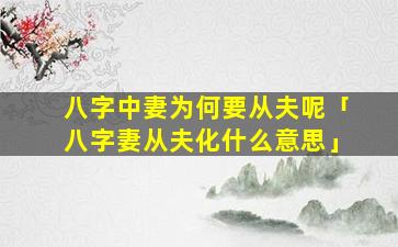 八字妻从夫化是 🐯 指在八字命理中,女命八字中,出,现某些特定的组 🌵 合或特征表示女性的婚姻生活会以丈 🌷 夫为主顺从丈夫的意见和安排。