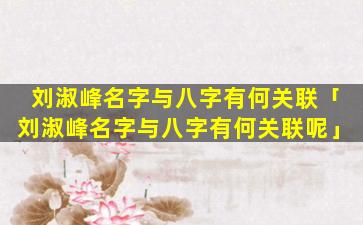 刘 🕊 淑峰名 🦟 字与八字关 💐 联