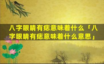 八字眼睛 🕊 有痣可能 🐬 具 🐞 有以下含义: