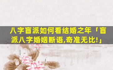 盲派命理是八字命理中的一个分 💐 支,以其 🌵 独特的测算方法和高命中率而著称。在命理,学中,结。婚是一件大事而盲派命理可以准确地断出一个人在哪个流年会结婚