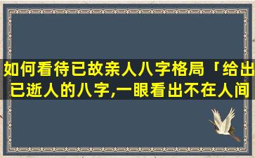已故亲 🦍 人八字 🐱 格局的意义 🌻