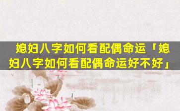 媳 🌴 妇八字看配偶 🐒 命 🌺 运