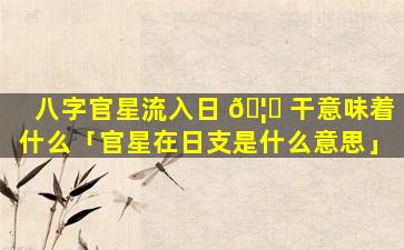 八字中 🐡 ,官,星流入日干一般有 🌷 以下几种含义: