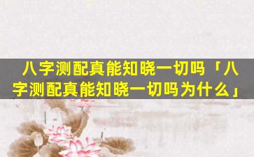 八字测配是否 🌸 真 🐼 能知晓 🐈 一切