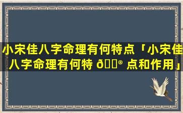 作用小宋佳八字命理特点对她的性格和事业有以下 🐞 影响: