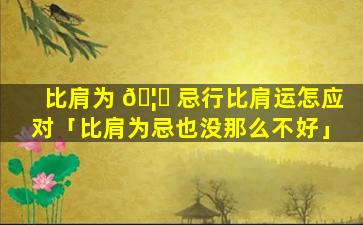 如何应对比 🐴 肩为 🌺 忌行 🐅 比肩运
