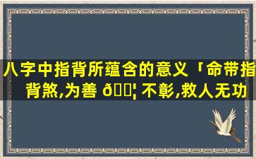 背的意义背所蕴含的意义与日干的强弱、五行生 🦢 克以及流年运势息息相关。