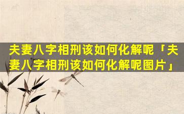 化 🐶 解夫 🐅 妻八字相刑的方法:
