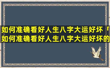 如何准确 🌾 看好人生八 🐳 字大运好坏