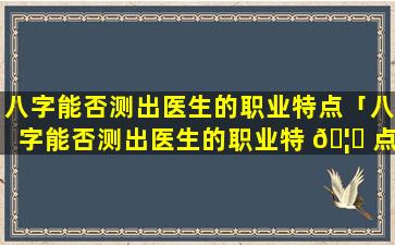 八字是否能测出医生的职业特点和 🌻 性格 🍀