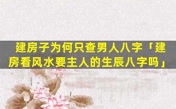 这是不对的,建,房子时男女双方的八字都 🕸 要查。
