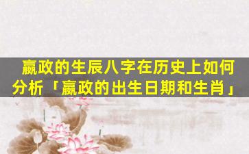 生肖:牛嬴政(秦始皇)的具体出生日期不详,历(史记载上仅有出生年份为 💮 秦庄襄王四年前年259)。