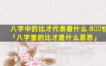 八字中的比 🕊 才 🍁
