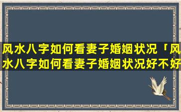根据风水八 🐺 字看妻 🐼 子婚姻状况 🦁